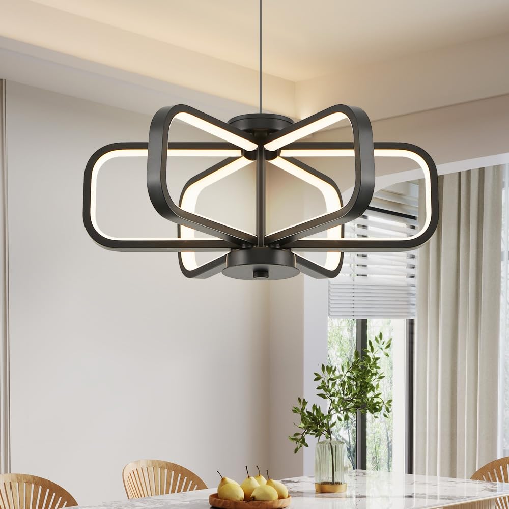 Gednbo Modern Chandelier for Dining Room LED Dimmable Black Chandelier Light Fixture, Height-Adjustable, 3000K Warm Light 6 Square Chandelier for Dining Room, Kitchen Island, Foyer, Entryway, Stairway