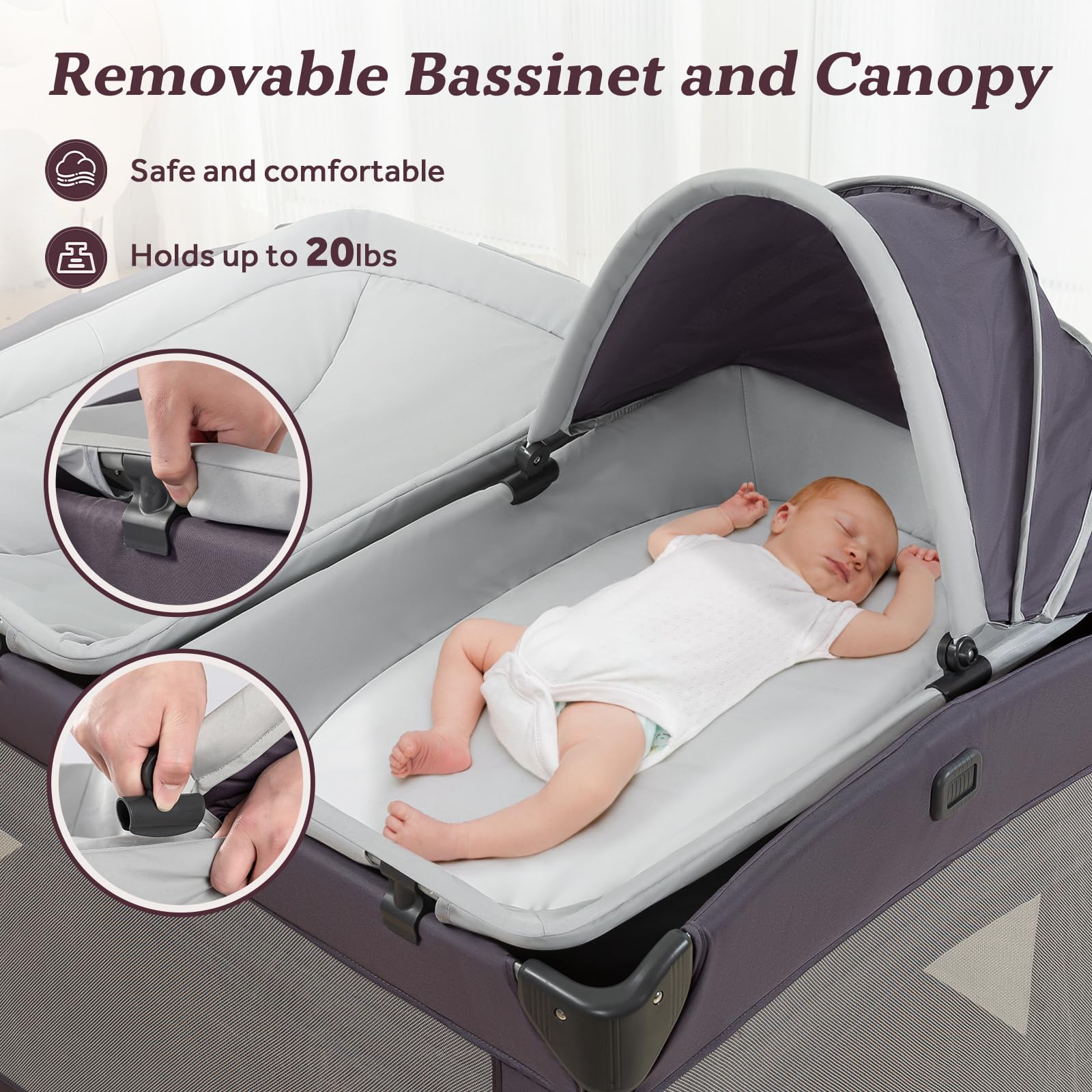 4-in-1 Portable Baby Playard with Bassinet & Canopy
