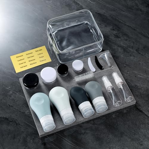 Gemice Travel Bottles for Toiletries, TSA Approved Travel Containers Leak Proof Silicone Squeezable Travel Accessories Set 2oz 3oz for Shampoo Conditioner Lotion Body Wash (16 Pack)