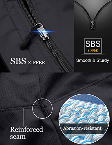 - Practical Pockets: 2 zippered hand pockets, 1 zippered chest pocket, 1 internal big mesh pocket, and 1 internal secure pocket, suitable for storing phone, wallet, passport, and other accessories. There is an earphone line fastening device inside the jacket.