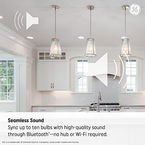 Details: GE LED+ Speaker light bulb seamlessly connects to your phone, tablet, TV or any other Bluetooth enabled device which enables sound streams from your light source. Sync up to ten bulbs to create wire-free, high-quality surround sound. Use the included easy-to-use remote to control music and light separately. With no app to download, simply play music from your Bluetooth-enabled device.