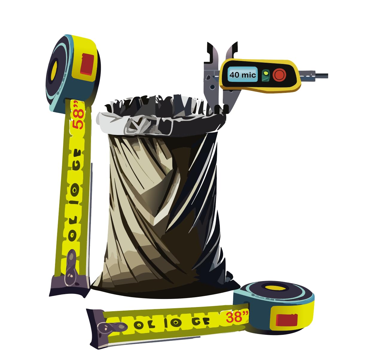 Details: Black Trash Bags, with a LARGE capacity of 60 gallons and measuring 38x58 and 38 microns thick it will accommodate large drums and garbage cans handling anything you can fit in it.