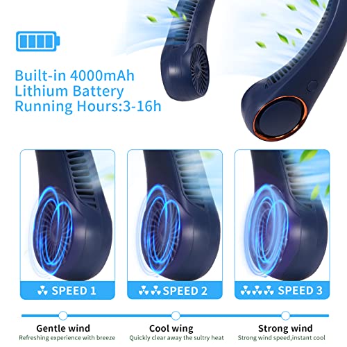 Geolinca Portable Neck Fan-Bladeless Neck Fans Portable Rechargeable, Cooling Personal Fan, Travel Fan 3 Speeds 78 Air Outlet, 5000 mAh Battery Neck Fans for Women Outdoor Indoor-Blue