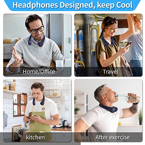 - 【180°Flexible angle adjustment-Comfortable to Wear】Wearable neck fan Adopting ABS(turbo part)+Silicone material(rear curving part), ensure you a more comfortable and lightweight feeling, also this portable fan features with flexible angle adjustment function, 180° freely adjustable, perfectly fit for all body size. This hands free hanging fan with fashionable headphone design would provide you an elegant and cool daily style.