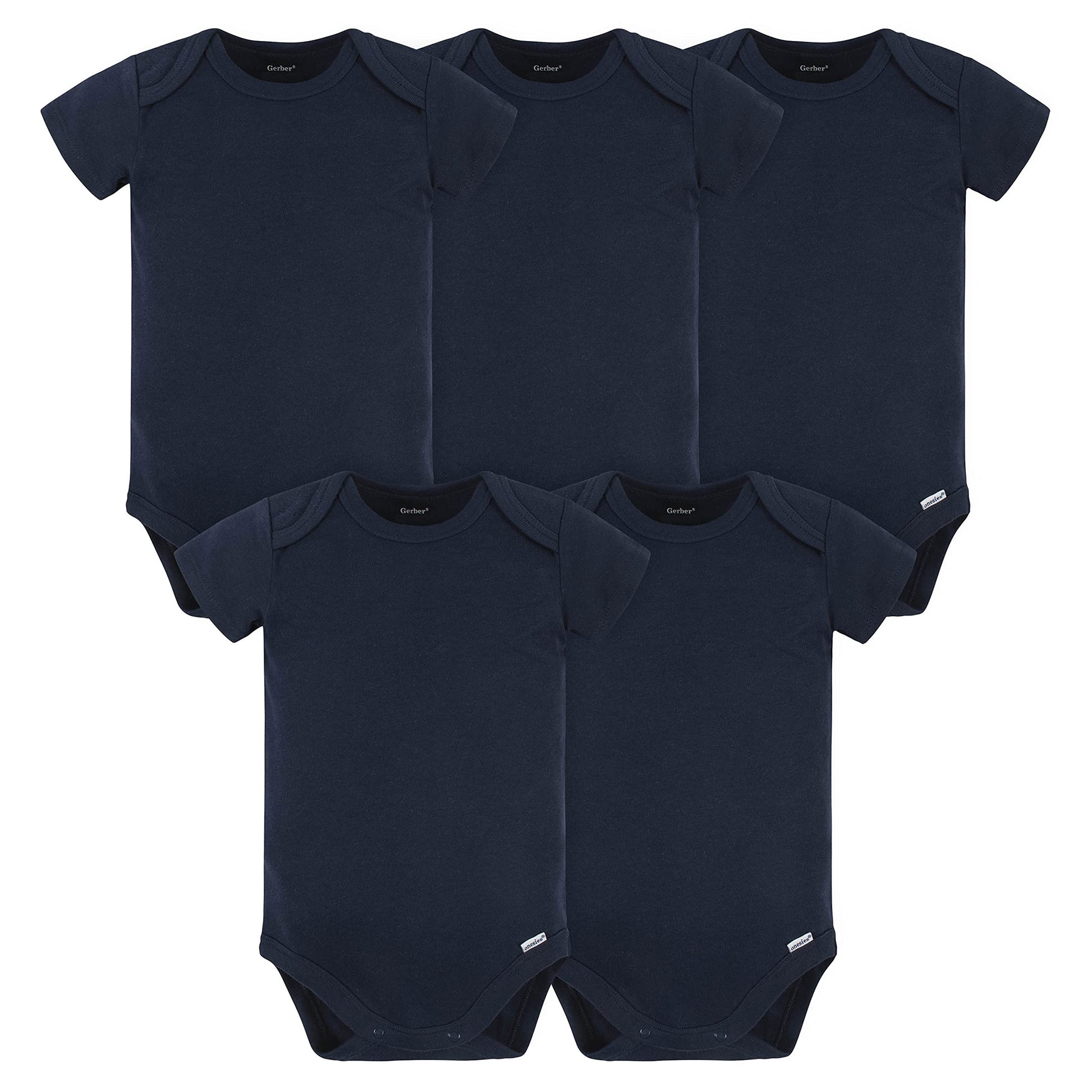 Gerber 5-Pack Baby Onesies, Navy, 0-3 Months