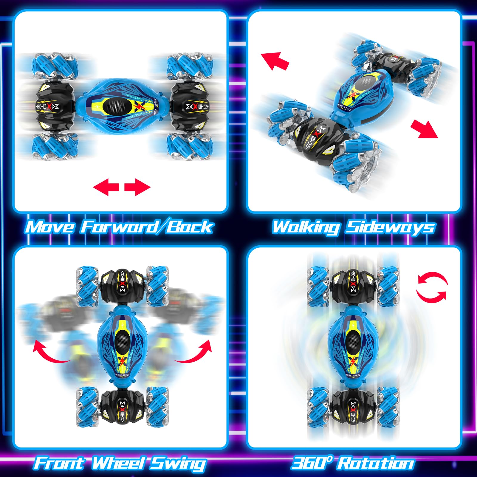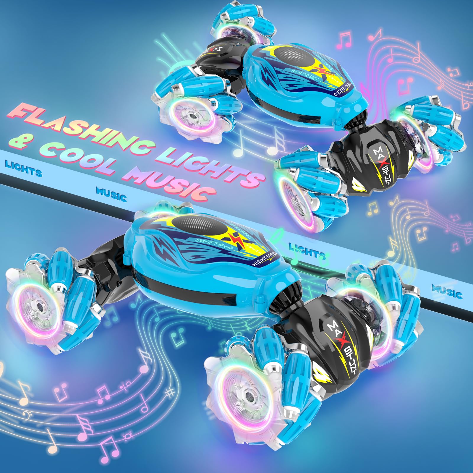 - 【Gesture Sensing RC Stunt Car with Light & Music】: Gesture sensing twist car with colorful lights and cheerful music, bring a wonderful experience. Day or night, indoors or outdoors, dazzling lights and cool music immerse boys and girls in the fun of driving a car. Super cool car toys for kids girls boys age 8-13 and up.