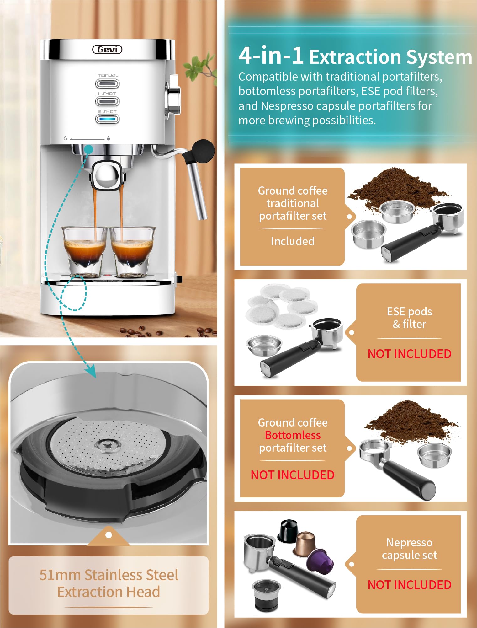 Gevi 20 Bar Espresso Machine, Cappuccino Machine with Milk Frother Steam Wand, Compact Espresso Super Automatic Espresso Machines for home with 34oz Removable Water Tank for Espresso Machines