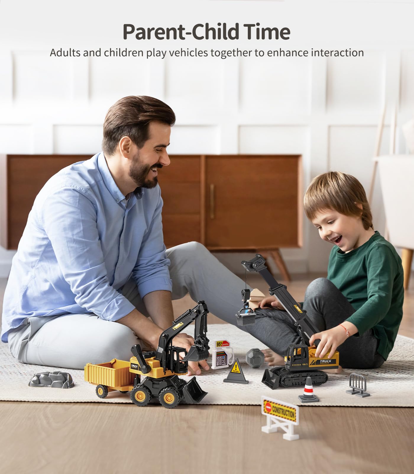Geyiie Construction Crane Toys Trucks, Excavator Toys for Kids 3-5, Bulldozer Toys for Boys Girls, Outdoor Play
