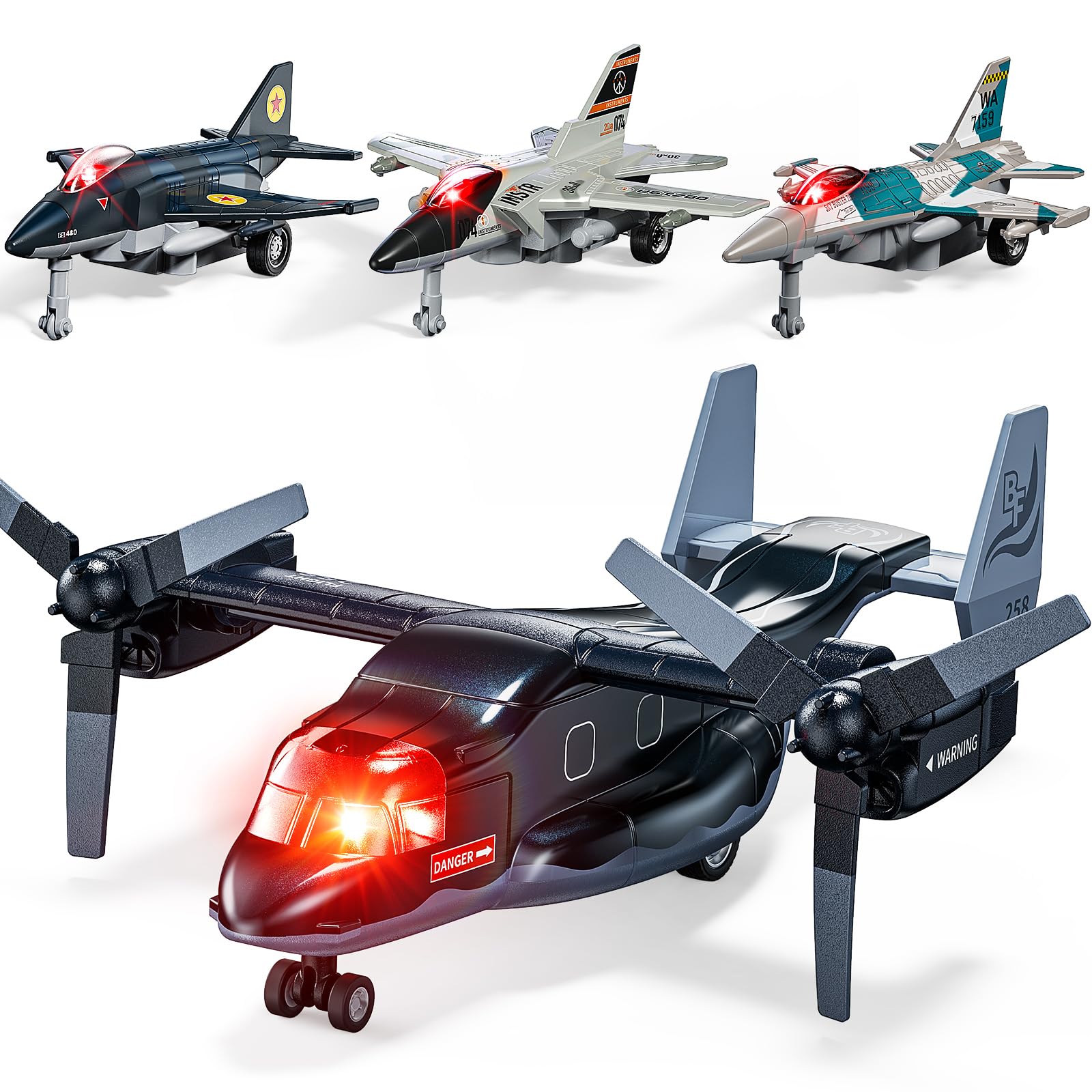 - 【Gift for Military Enthusiasts】These four aircraft toys are not only kids' favorites but also the perfect gift for aviation enthusiasts, military personnel, or collectors. Packaged in a gift box, this toy set makes an excellent present for occasions like Easter, ST. Patrick's day, Spring Break, Summer holiday, back to school, Thanksgiving, Christmas, Halloween, New Year, and birthdays for children.