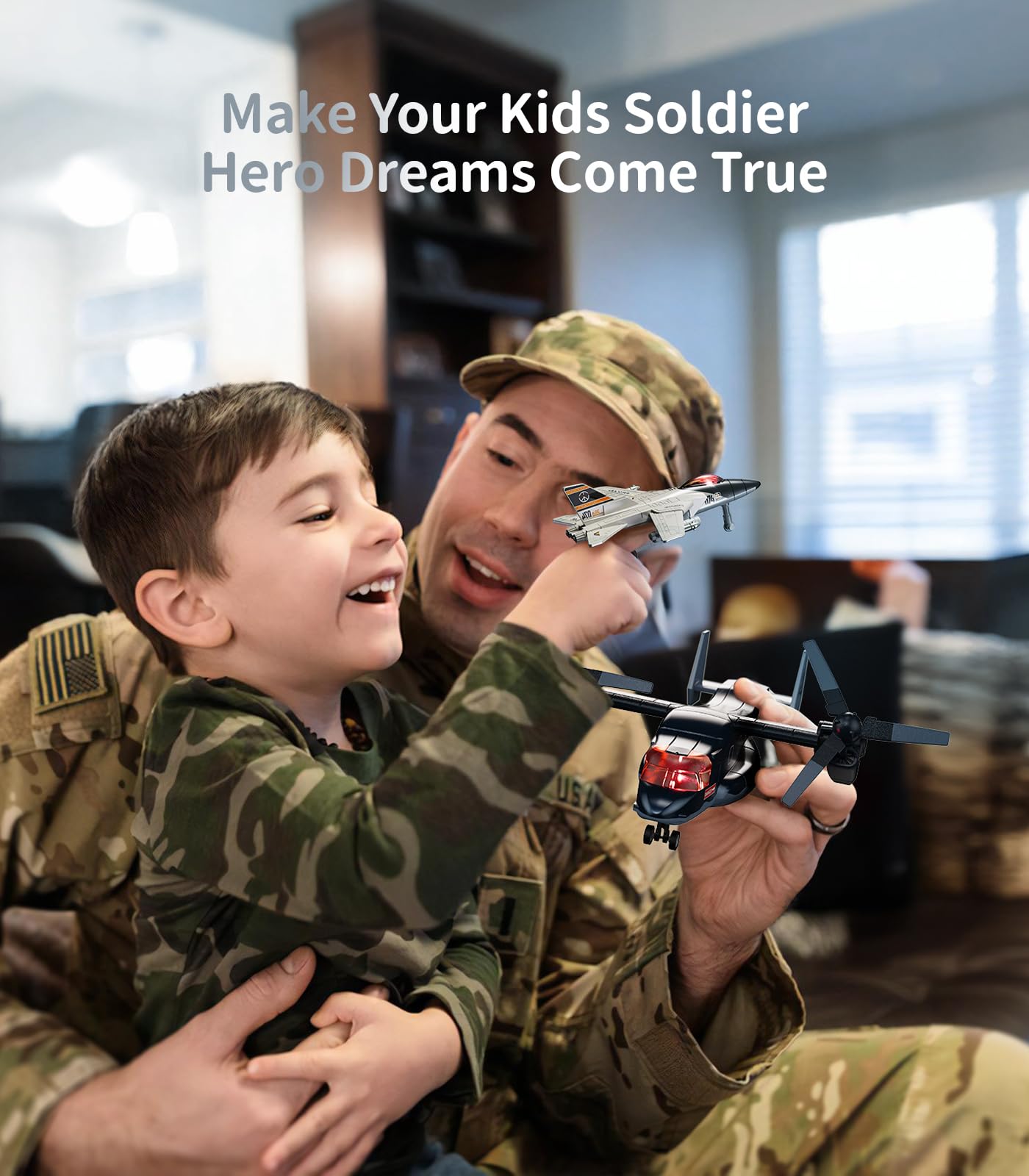 - 【Realistic & Exquisite Craftsmanship】The army planes feature transparent cabins, sound, and light elements, each intricate detail of the aircraft's body is finely crafted for a lifelike appearance. The use of high-temperature electrostatic baking paint techniques enhances both the texture and durability of the paint finish, resulting in a superior tactile experience for children.