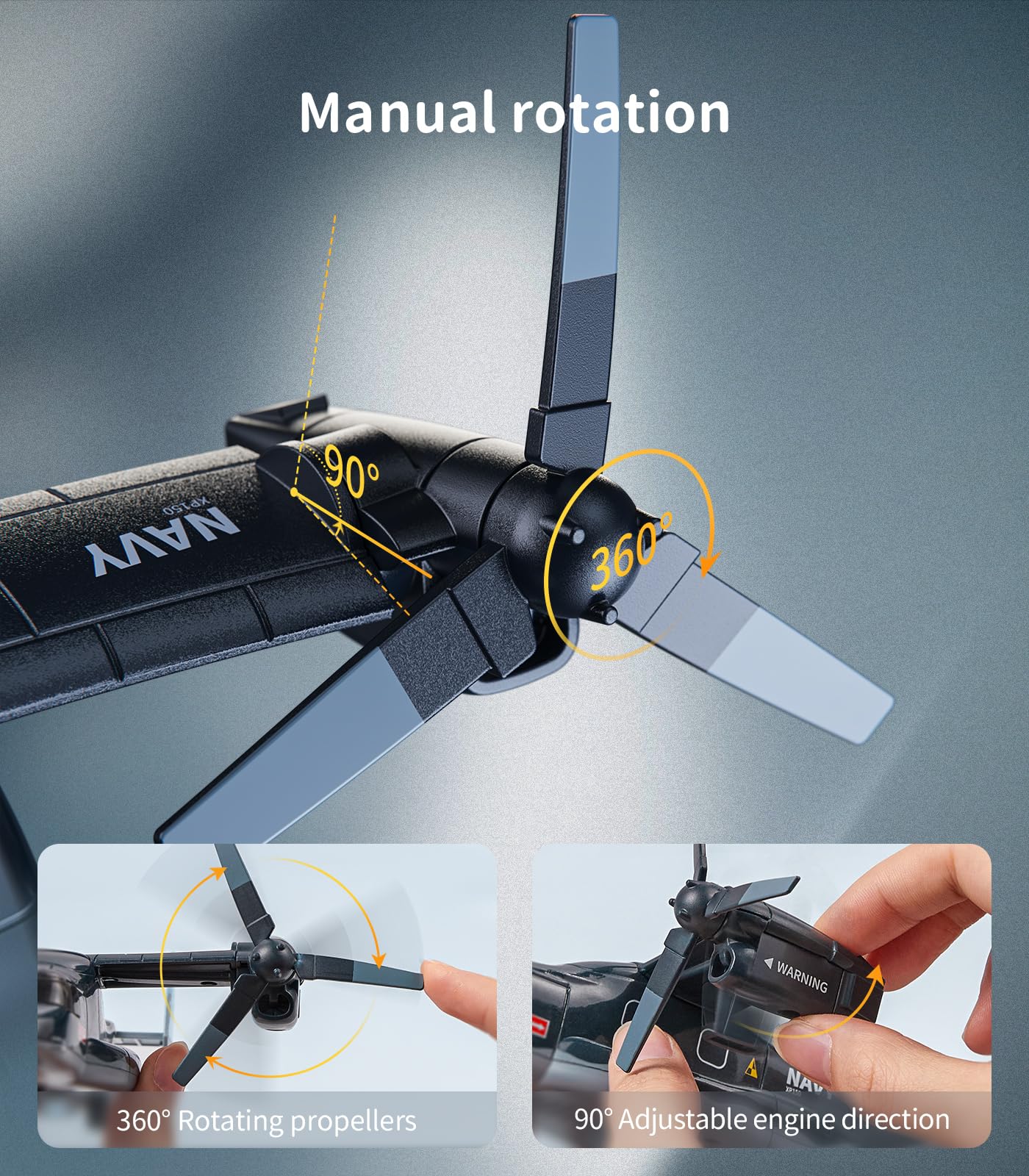 - 【Helicopter with Rotating Wings】The Large aircraft's wings are capable of a 90-degree swivel, while the rotor blades can be manually rotated 360 degrees by hand. This feature enhances the play experience for children, allowing them to have even more interactive fun.