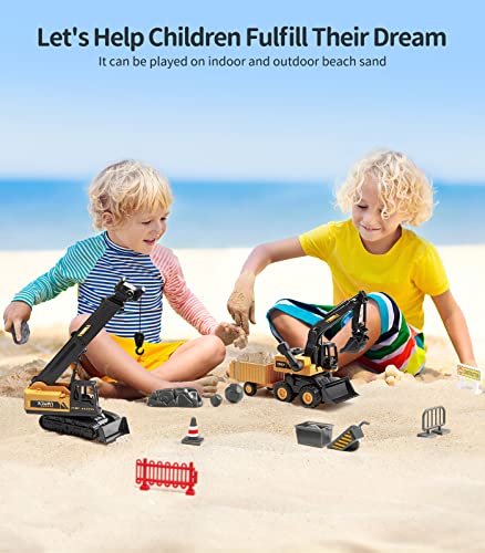 - Realistic and Functional: Toy excavator can move 360 degrees, Manual lever and make the boom up and down, scoop can be flexible move. The Crane have the pivoting base and extendable arm, crane hook can be raised and down. The realistic-looking toys for kids are ready for any construction job and help improve imagination.