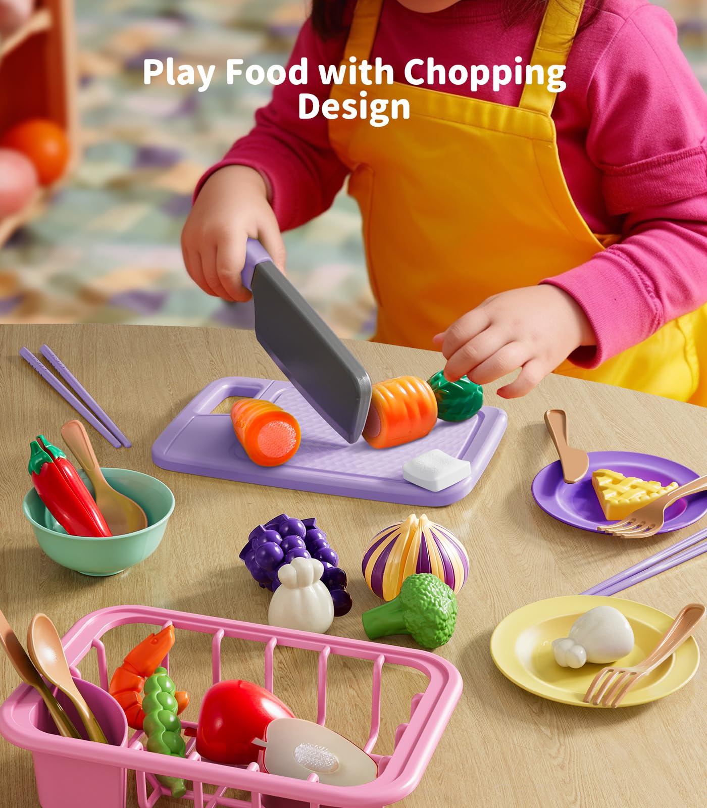 - Cutting Toy Set: Children will enjoy cutting colorful items like carrots, apples, onions, grapes, etc., in a manner that simulates real cutting. This helps improve children's awareness of various fruits and vegetables. It's a fun kitchen toy that sparks learning through play