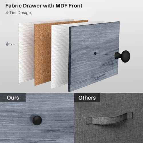 - Fabric Drawer with MDF Front: To improve the appearance of the night stand, we added an MDF front to the fabric drawer. Spend less to get a night table that appears to be constructed entirely of MDF while still preserving the useful adjustable drawer feature.