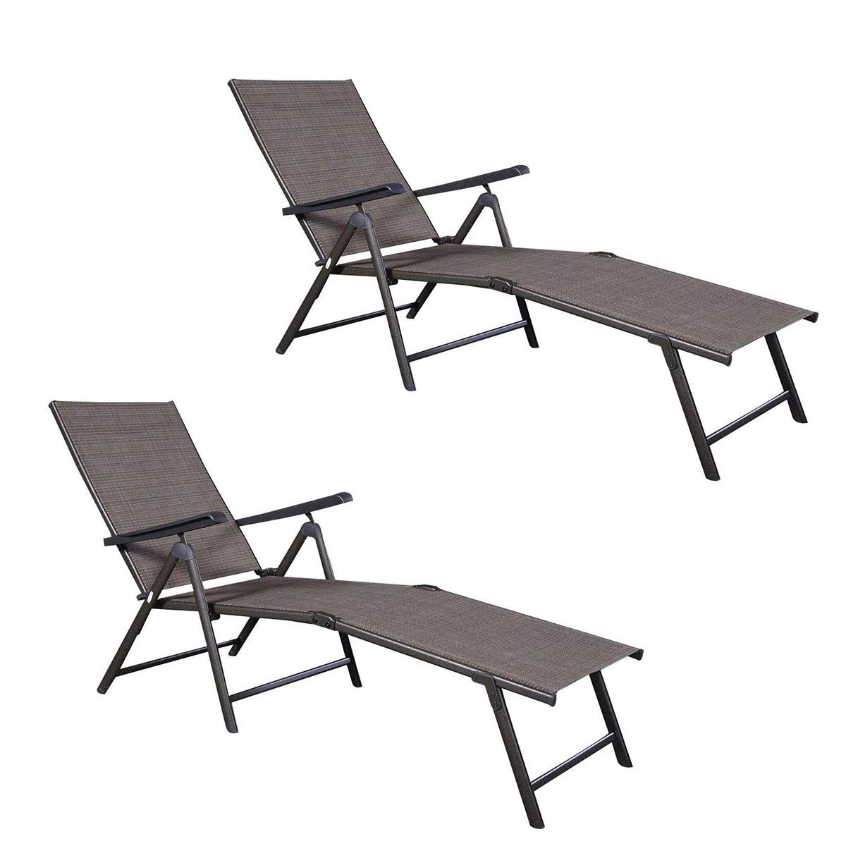 Giantex Set of 2 Chaise Lounge Chair with 5 Adjustable Reclining Positions, Patio Folding Recliner for Yard, Pool, Garden Beach Sunbathing Seat (2, Brown)