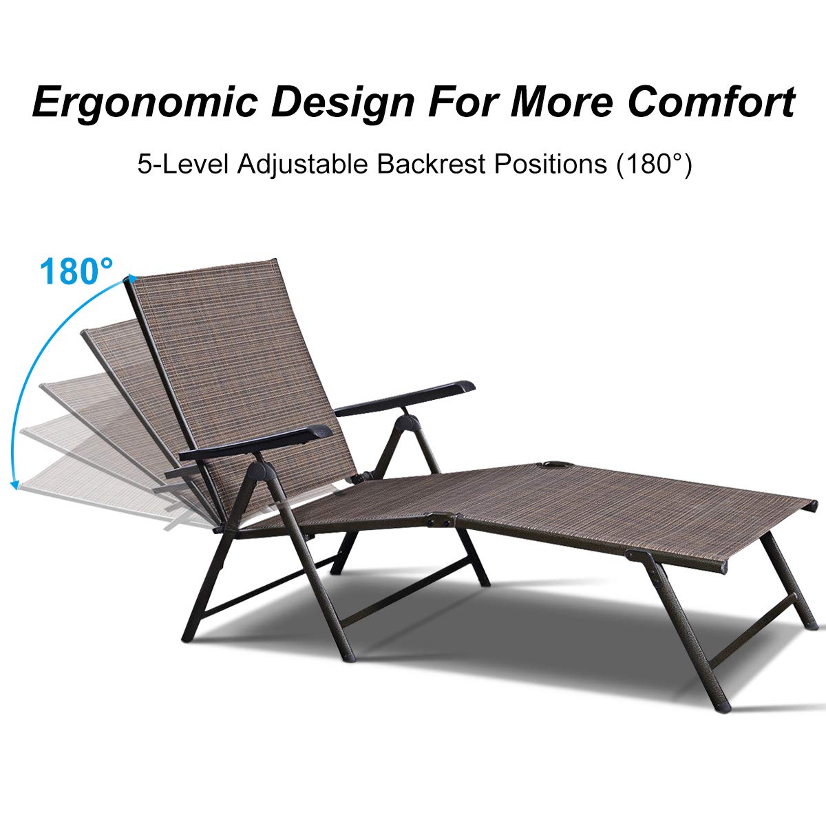 - ☼ ♡ Foldaway Design for Easy Carry & Storage ☼ ♡ This portable chaise lounge chairs lightweight enough to transport or carry to any places easily. Besides, it can be quickly set up and folded down for easy storage without taking up too much space.