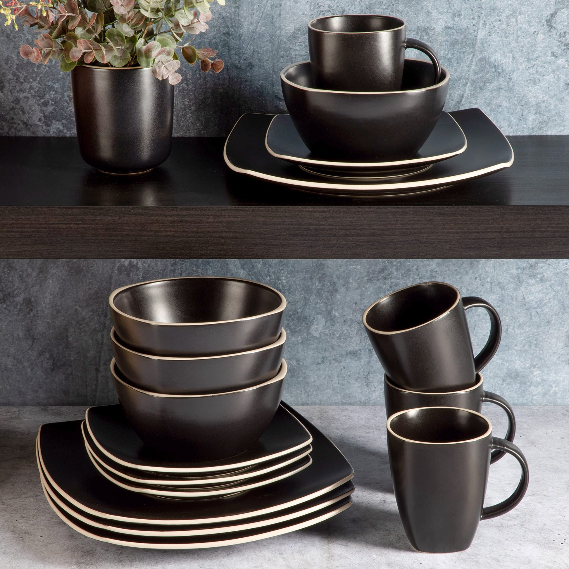 Gibson Soho Lounge Dinnerware Set, Service for 4 (16pcs), Matte Black