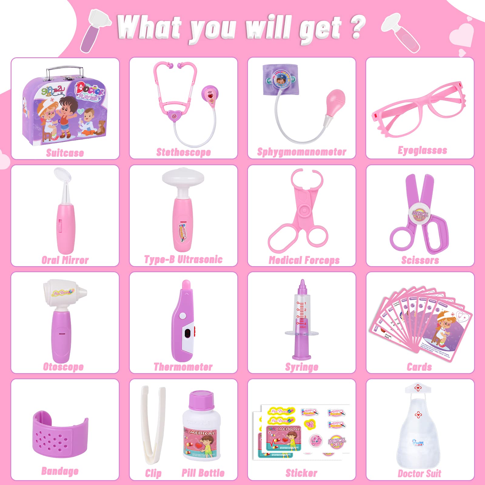 Gifts2U Doctor Kit for Kids, 28 Pieces Pretend Play Educational Toy Doctor Kit, Medical Kit with Sethoscope Doctor Playset for for Girls Ages 3-6