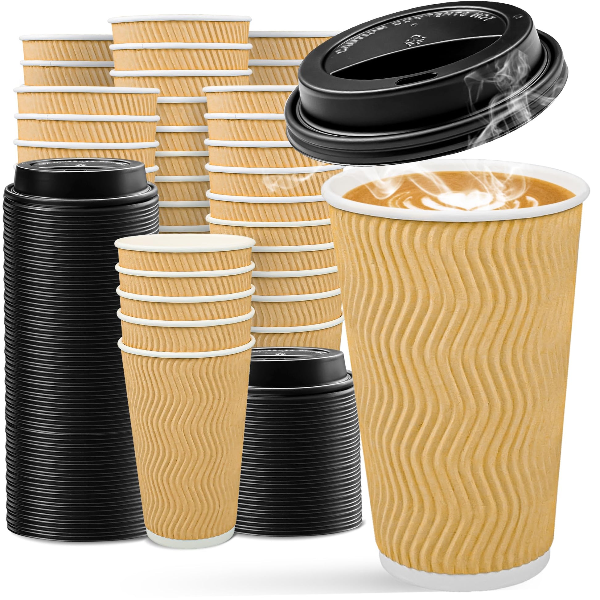 - Great Value Bulk Pack: You will receive 100 beige cups and 100 black matching lids. The portable Coffee cup can be used for family, office, wedding, party, camping, travel and coffee bar.
