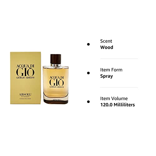 GIORGIO ARMANI Acqua Di Gio Absolu for Men Eau De Parfum Spray, Woody Aromatic, 4.2 Oz