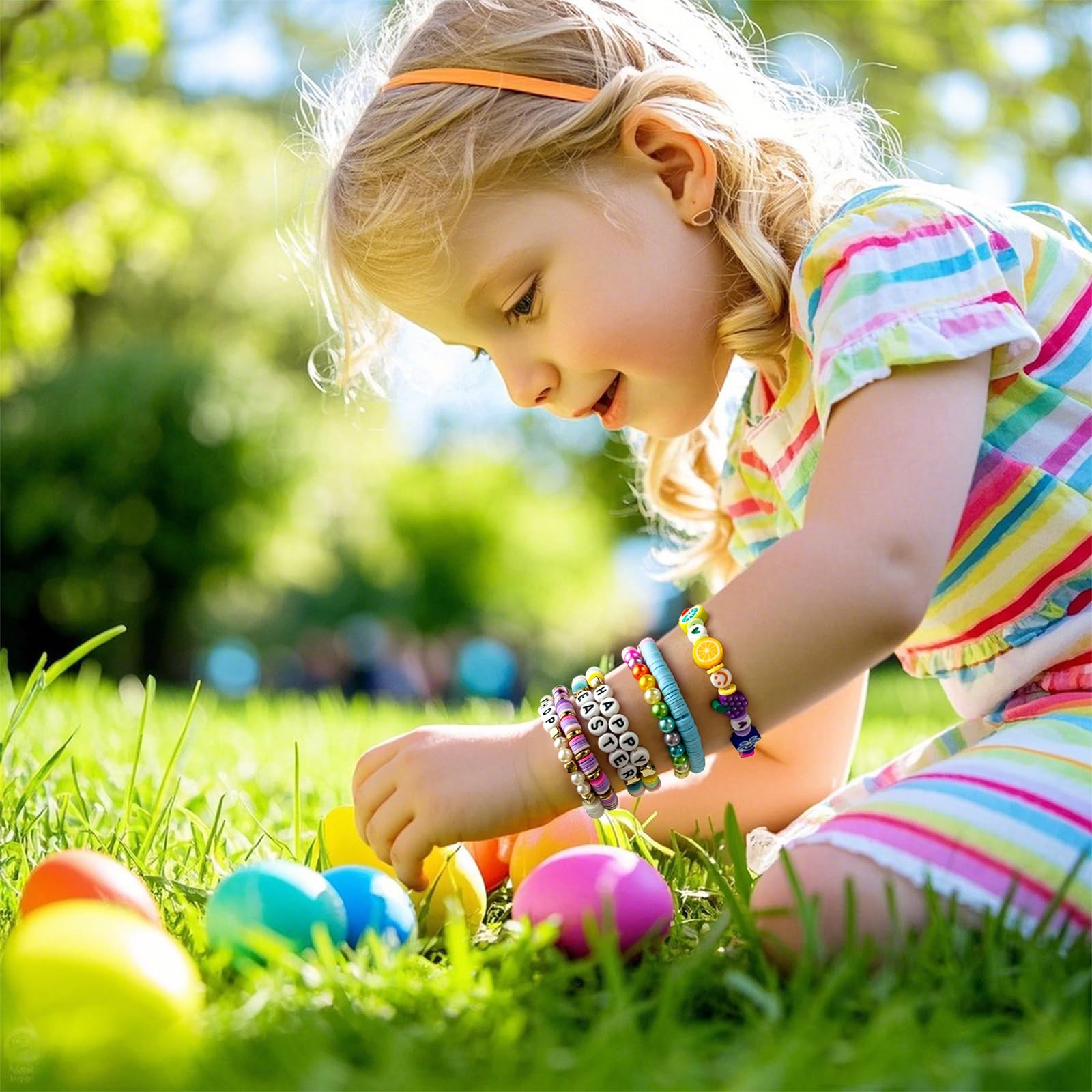 - Making a Jewelry Craft is Very Simple: combining clay beads with letter beads, colored round beads, fruit beads, talismans, etc, and then connecting them with elastic strings. Children will spend several hours creating and stimulating their creativity. This DIY toy kit is packaged in a gift box with a ribbon handle, very portable. Suitable as a toy gift for parents to give to their children, parents can also accompany their children in designing various jewelry crafts