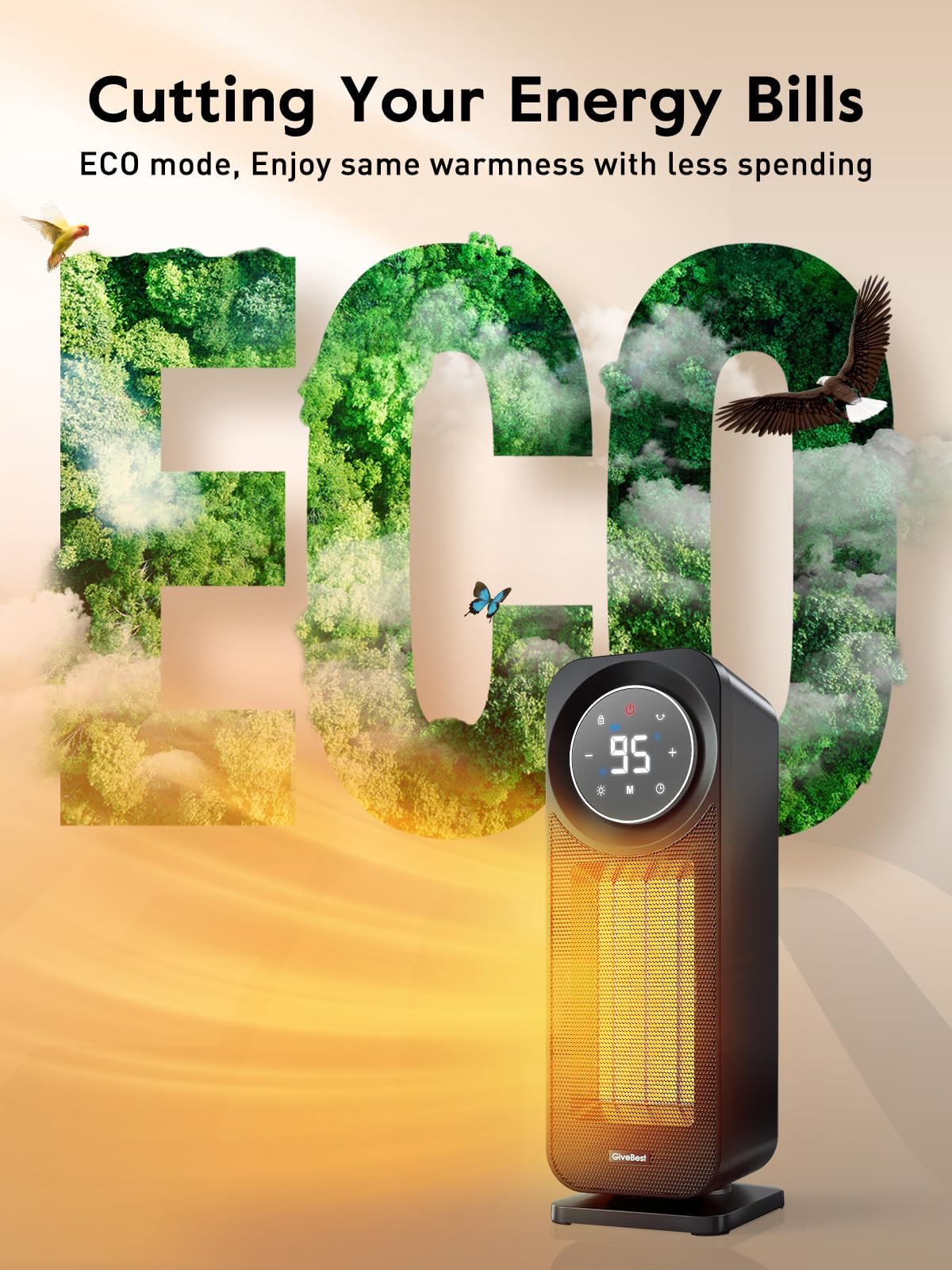 - ใ๐ญ๐ฑ๐ฌ๐ฌ๐ช ๐๐ฎ๐๐ ๐๐ฒ๐ฎ๐๐ถ๐ป๐ด ๐ฎ๐ป๐ฑ ๐ฑ ๐ ๐ผ๐ฑ๐ฒ๐ใThe GiveBest ceramic space heater heats up more efficiently with up to 1500W working power, reaching your desired temperature immediately, letting you feel fast, balmy heat straight away. Choose from 5 heating modes ECO, P3(1500W)/P2(1000W)/P1(500W), FAN Only according to your needs.