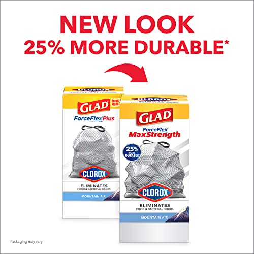 - HELP ELIMINATE FOOD AND BACTERIAL ODORS: Glad ForceFlex MaxStrength with Clorox Tall Kitchen Trash Bags help you take control of the toughest food and bacterial odors in your kitchen