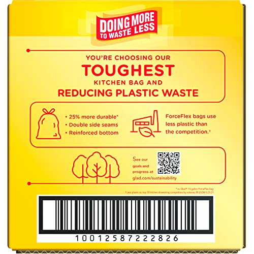 - PRODUCTS WITH LESS PLASTIC: Glad ForceFlex MaxStrength Tall Kitchen Trash Bags are made with less plastic than the competition** without sacrificing strength