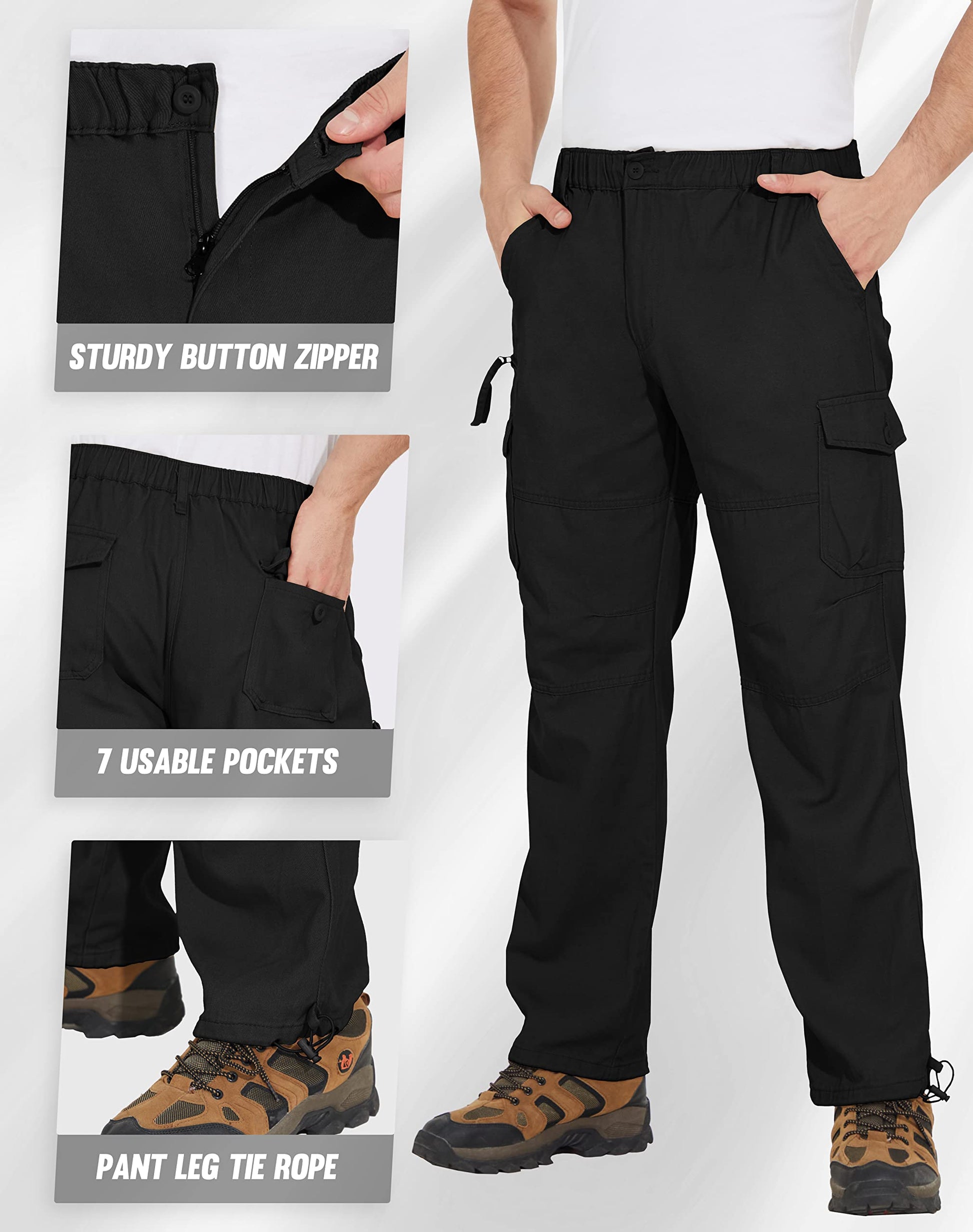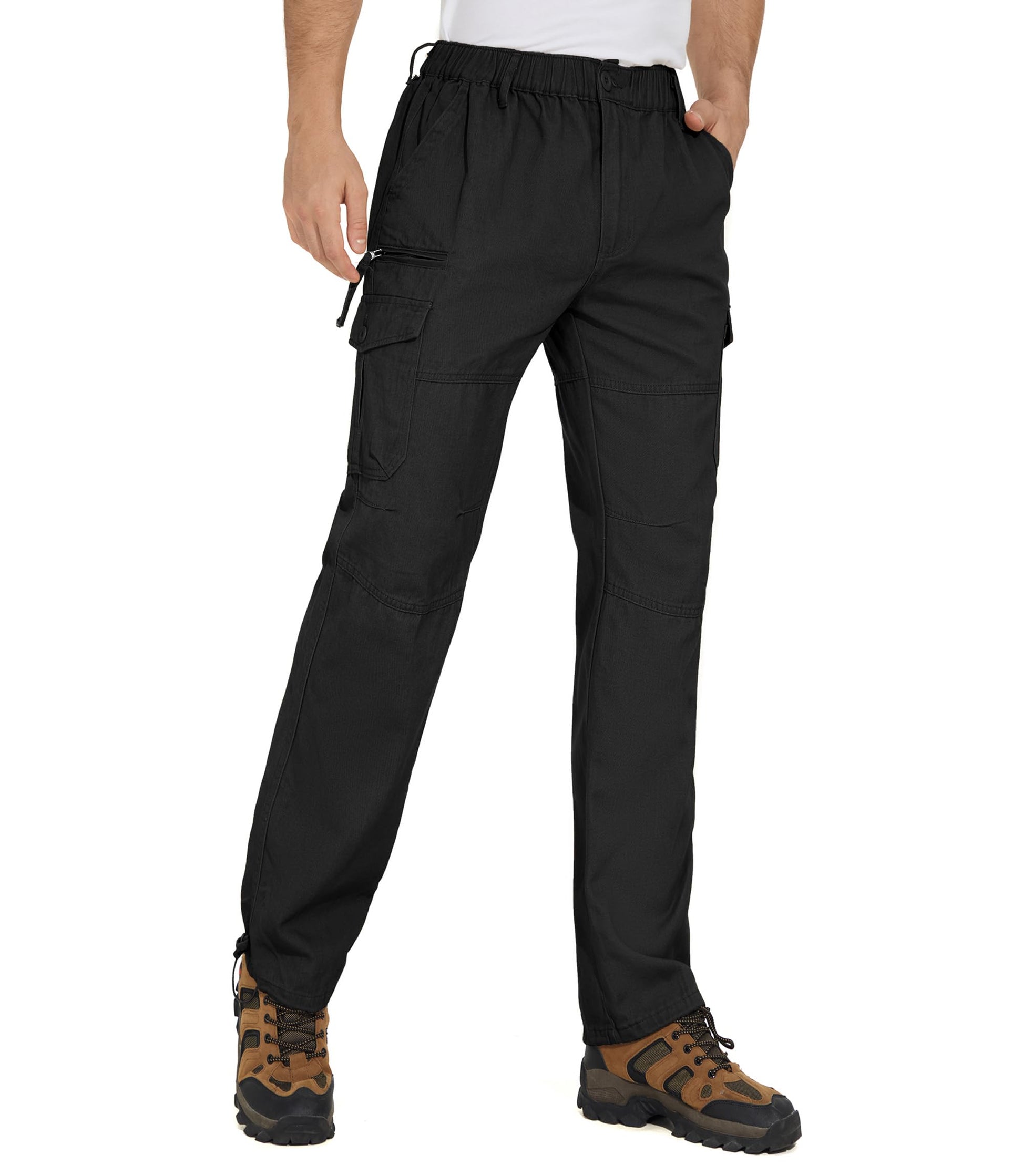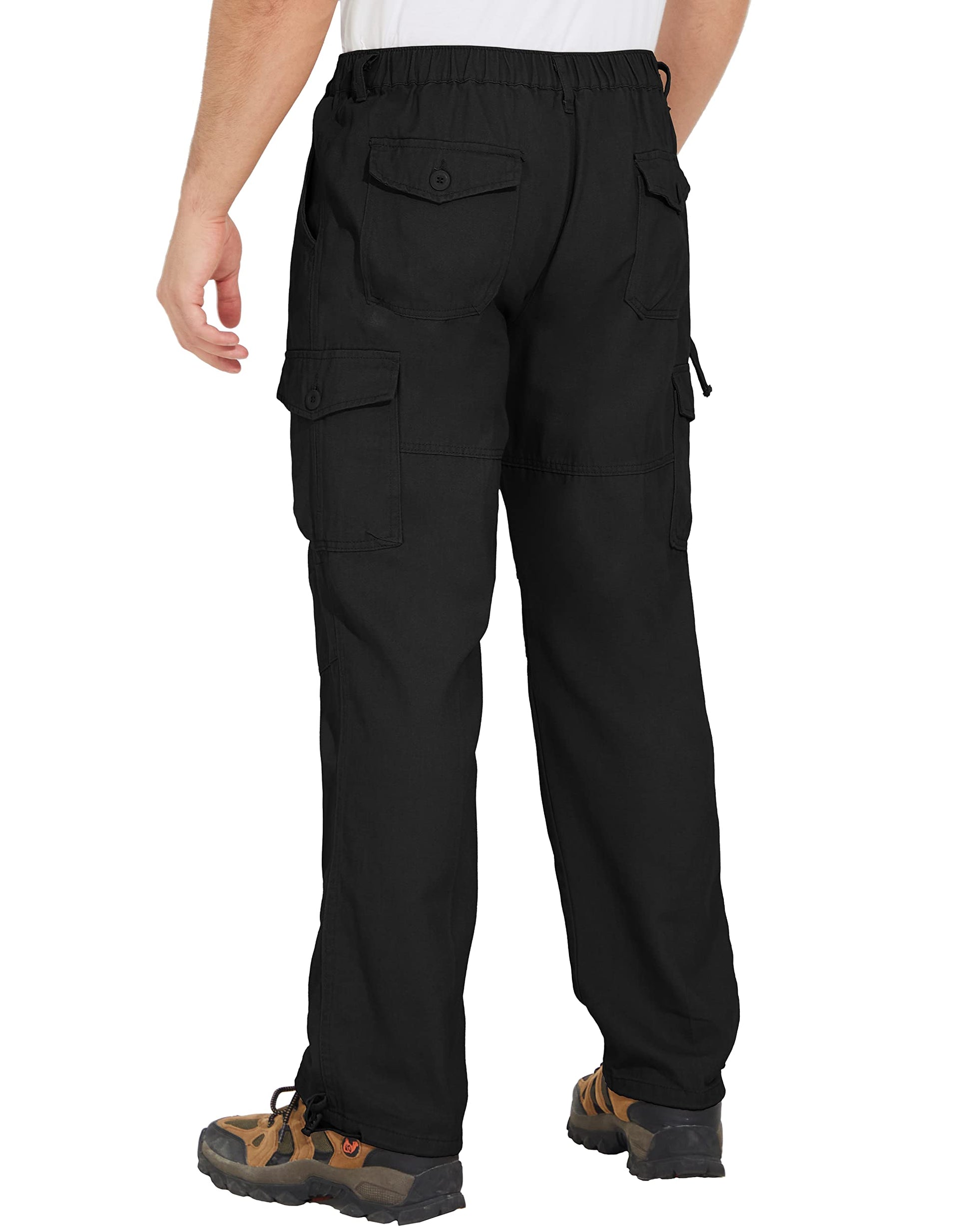 GLESTORE Cargo Pants for Men Relaxed Fit Work Pants with Pockets and Drawstring Mens Slacks Expandable Waist Black 34