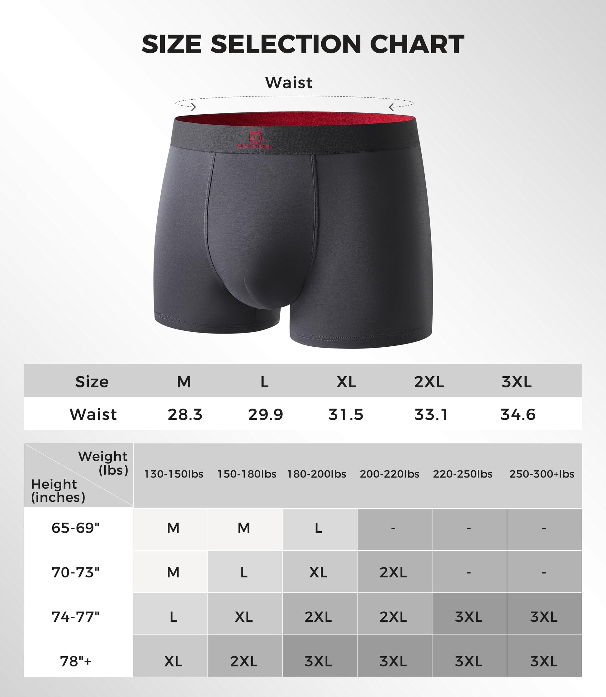 - Flexible 4-Way Stretch Fit: Elastane-blended fabric stretches 180% in all directions. Snug yet non-binding fit, these mens underwear trunks an move naturally with sitting/bending motions.