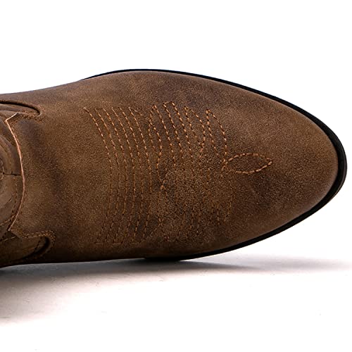 - Design: These Women's Cowgirl Boots Are Set On Sturdy Block Heels Reinforced With Cool Interpretation Of Western Styles-Cowboy-Inspired Embroidery. For All Occasions: You Can Wear Short Cowgirl Boots All Seasons. Available In Black, Dark Grey, Chocolate Brown, Light Brown.Match Them With You Midi Dresses Or Jeans.