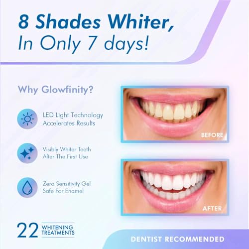 GLOWFINITY Teeth Whitening Kit - LED Light, 35% Carbamide Peroxide, (3) 3ml Gel Syringes, (1) Remineralization Gel, and Tray