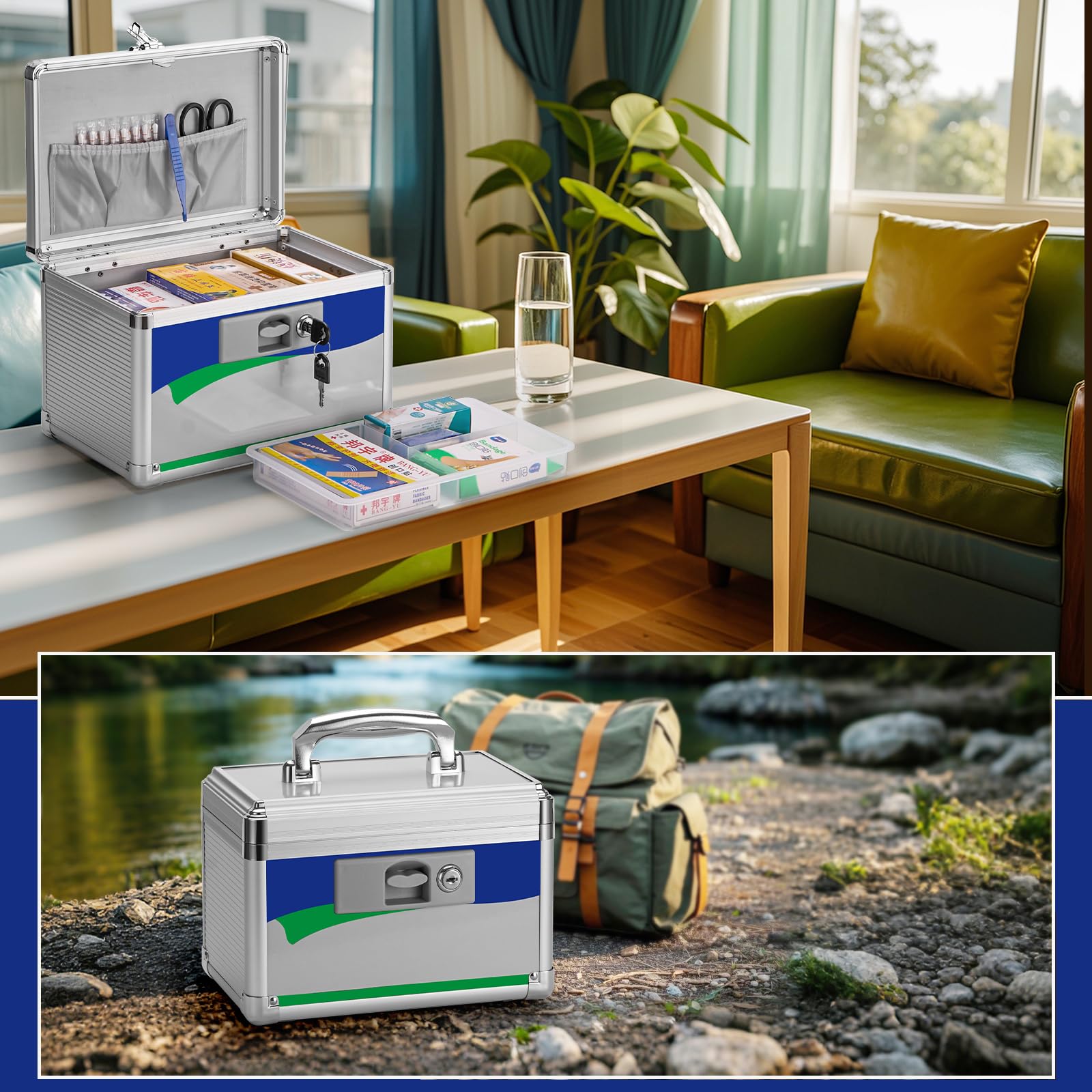 - PERFECT SIZE: Measuring 10 x 6 x 6.7", blue, unique lock with 2 keys. our locking medicine box can store up to 8-10 pill bottles or any other small first aid