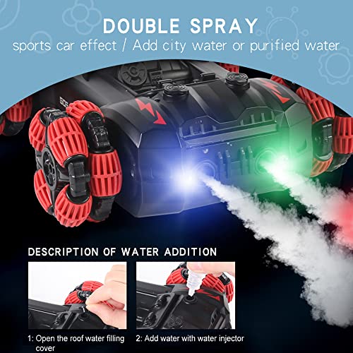- ✿Amazing 360° ROTATING STUNT CAR:In addition to the basic skills that ordinary remote control cars should have, the car can also rotate in situ at 360 degrees and drift , With simulated sound wave and double spray effect...Children can harvest their unique happiness together.