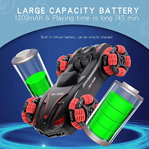 Details: RC Stunt Car,Perfect Sports RC Car Gift for Kids With attractive appearance and flexible operation, here’s the perfect RC toy gift for boys and girls! It has 360° spin drift stunts & simulated sound wave & double spray effect...All of you can enjoy the thrill with this super fast remote control car.