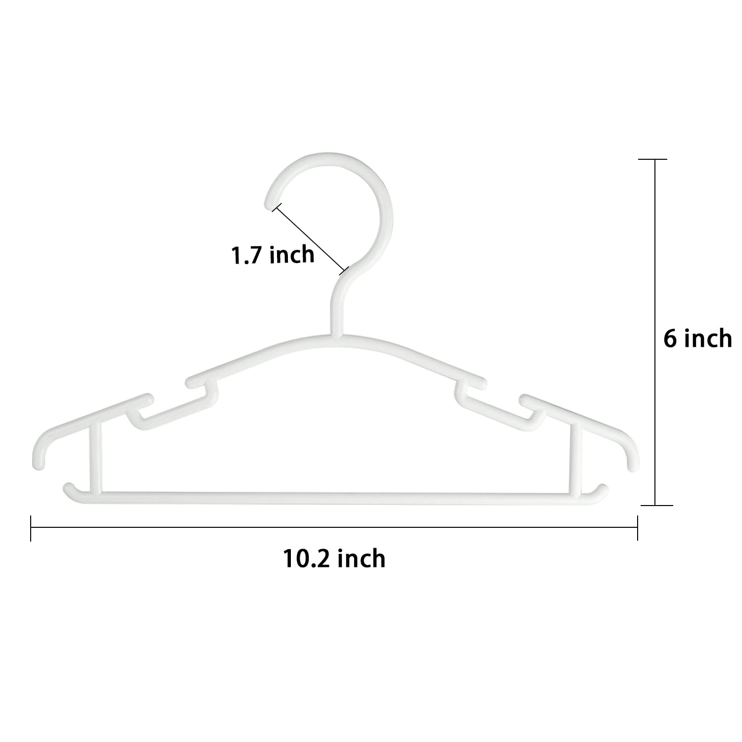 - These baby closet hangers are suitable for hanging clothes from newborn sizing to 2T. Dimension: (L)10.2" x (H)6"; Suitable for closet bar diameter less than 1.2".The baby's clothes are anywhere from 3 months to 18 months and you had no trouble putting them up.