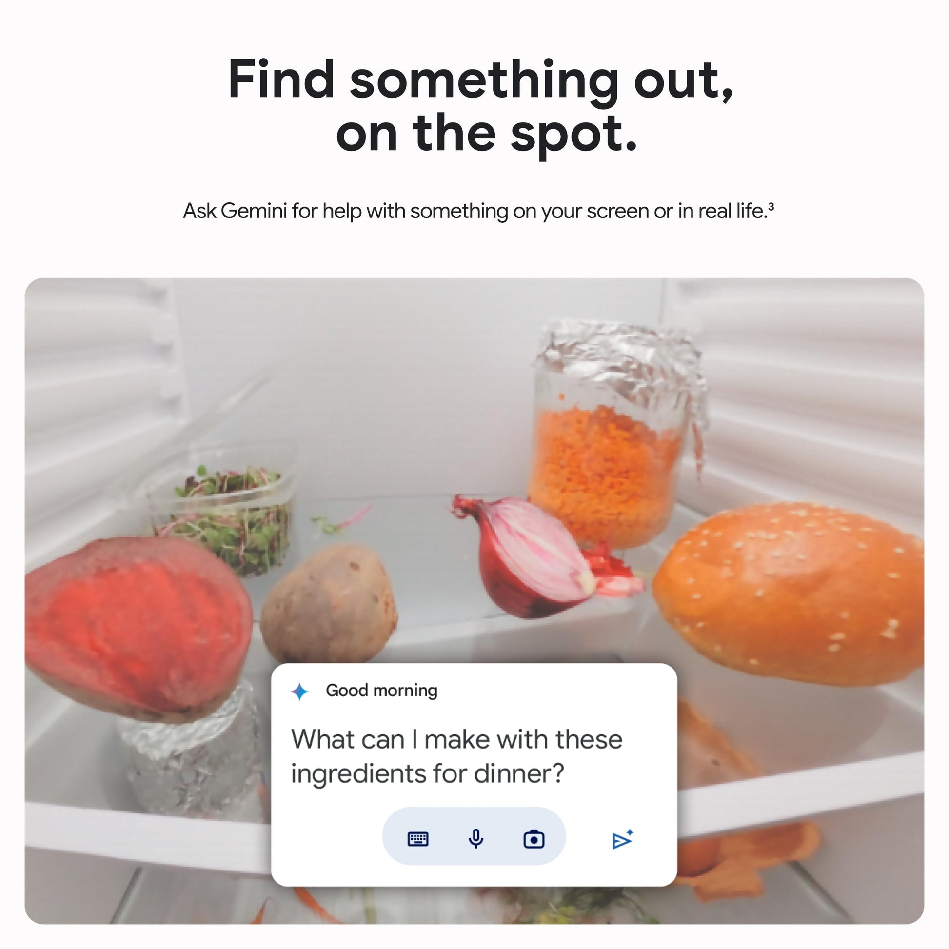 - Get more info quickly with Gemini, your built-in AI assistant[3]; instead of typing, use Gemini Live; it follows along even if you change the topic or switch the question[30]; and Pixel Screenshots helps you save things you’ll want to remember later