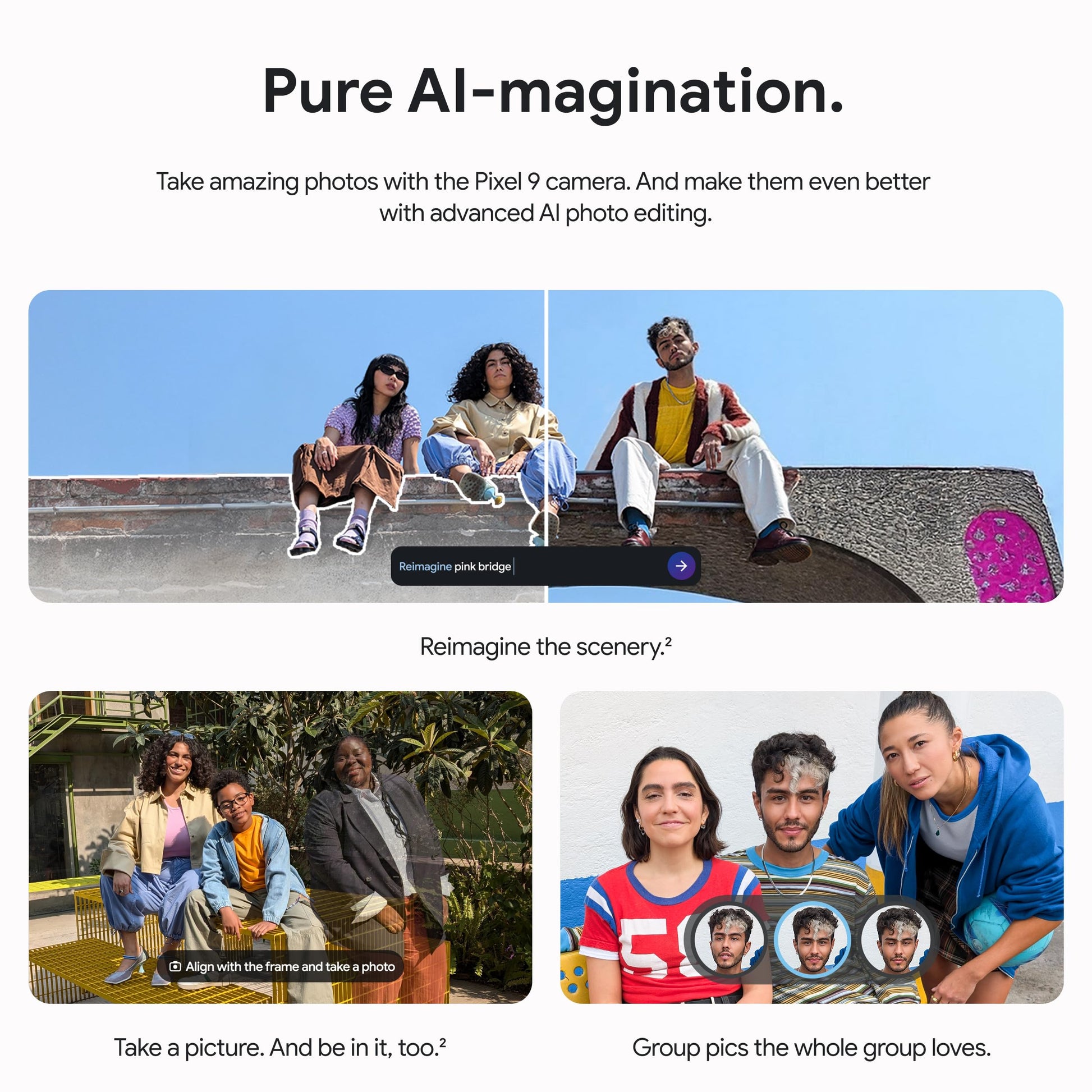 Details: Meet Pixel 9 with Gemini. Engineered by Google, Pixel gets the best of Google AI first. So you can take amazing photos, make edits like magic, and get things done even easier. Pixel can protect against spam and other threats, and it helps you in an emergency.[9]