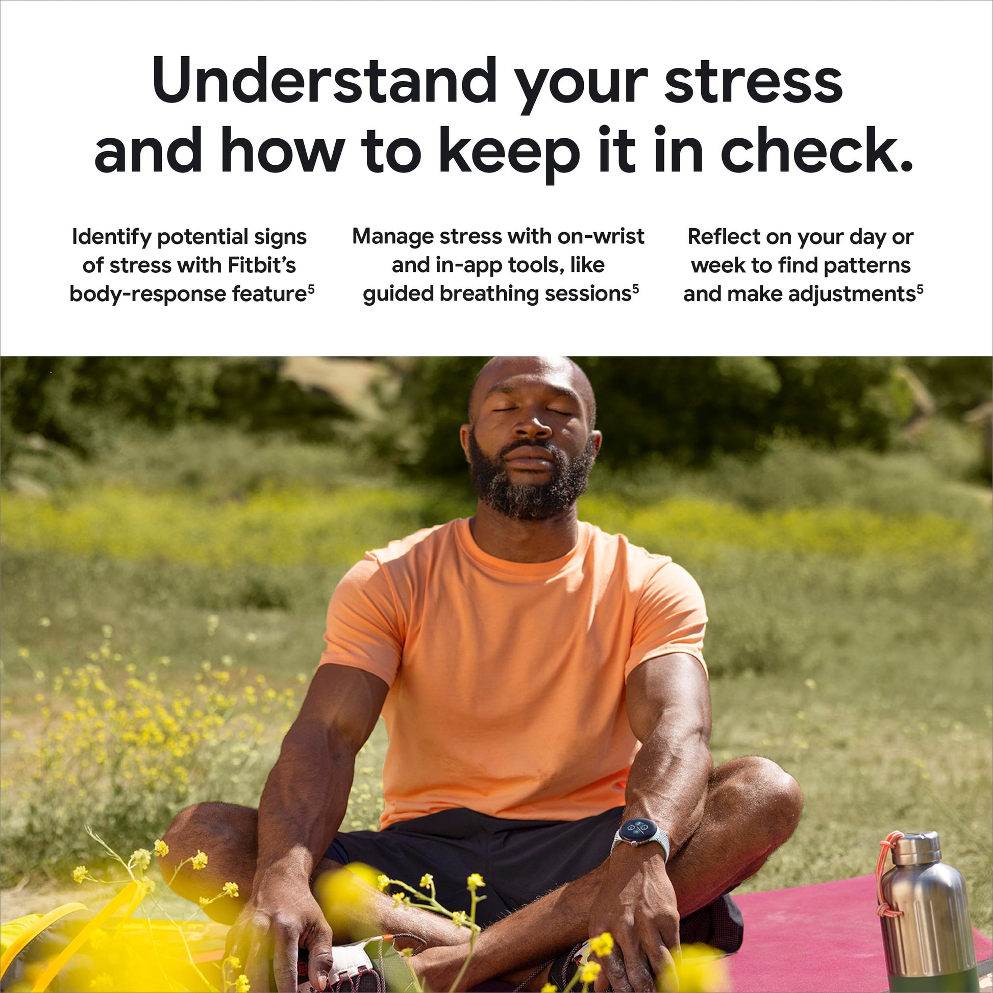 - Identify potential signs of stress with Fitbit’s body-response feature, so you can manage it in the moment[5]; and track variations in your skin temperature, blood oxygen levels, and sleep to help you spot possible changes[5,9,10]
