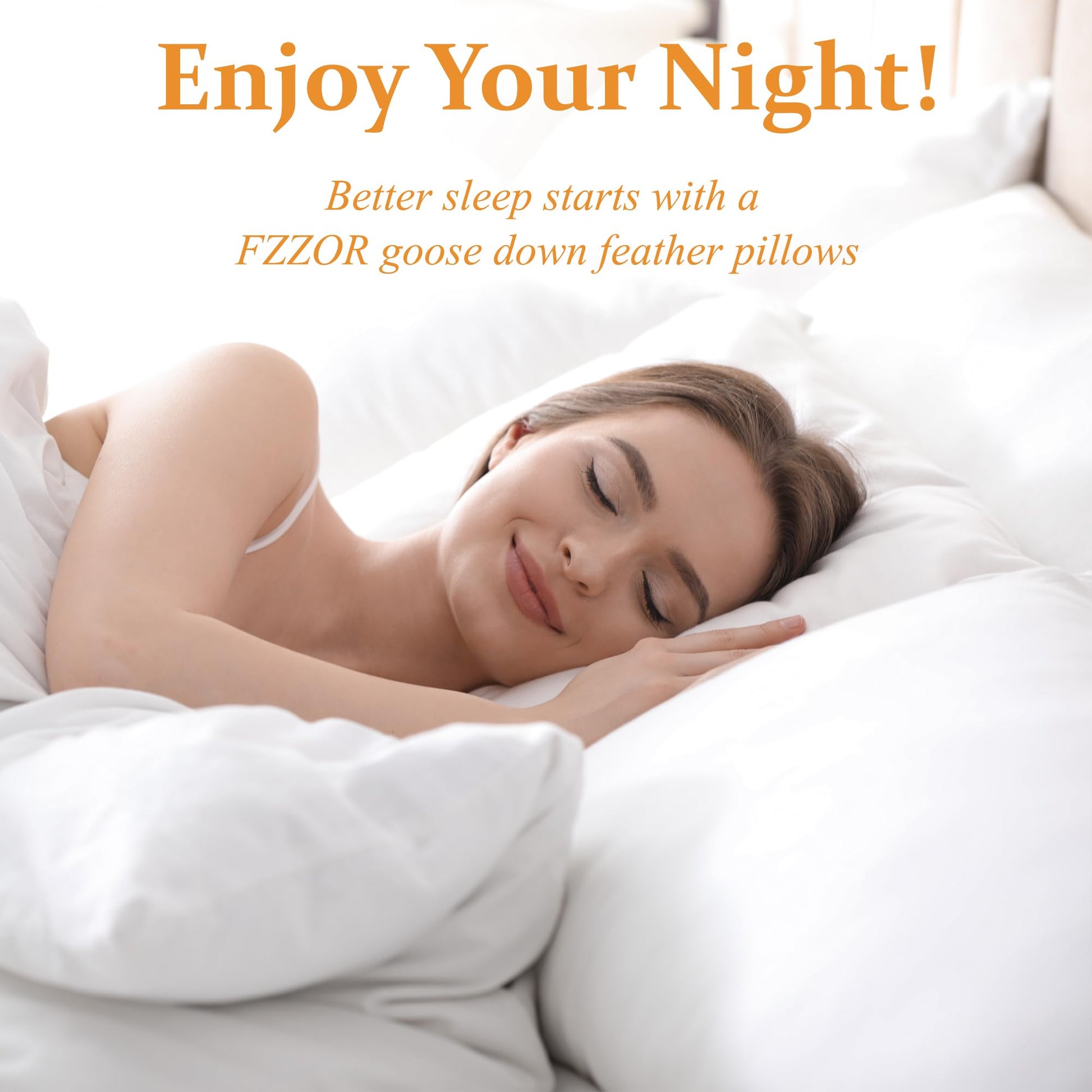 - 【High Quality Filling】FZZOR feather down pillows are filled with a blend of 80% feather and 20% down ,Sourced from our 20-year-old professional down feather pillows factoryand,go through multiple cleaning processes to make them fluffy, clean and odor free. 800 GSM filling allows the pillow to provide soft medium support and plenty of comfort for your head, neck and shoulders. Provide you a hotel quality goose feather down pillows.