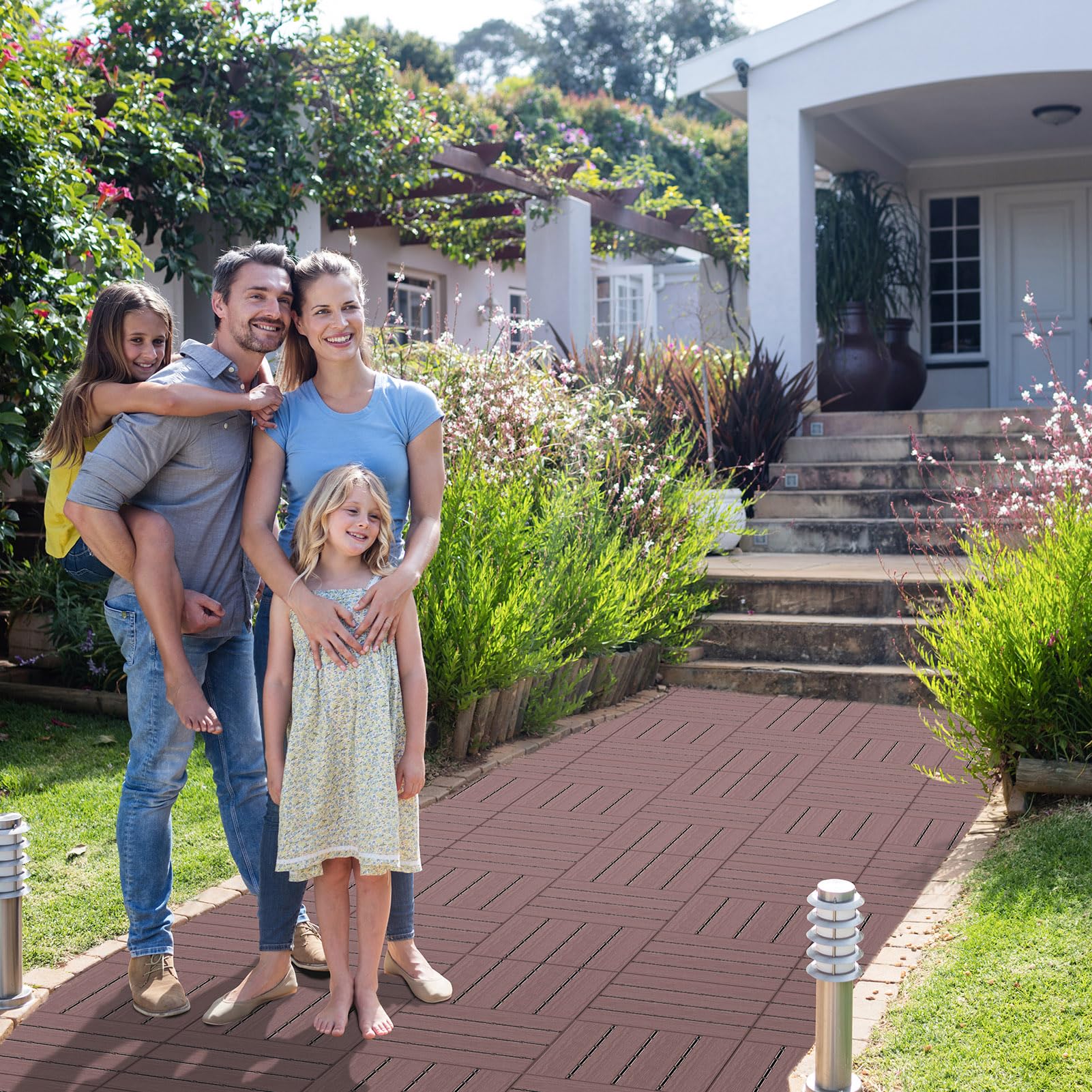 Goovilla Plastic Interlocking Deck Tiles, 9 Pack Patio Deck Tiles, 12"x12" Waterproof Outdoor Flooring All Weather Use, Patio Floor Decking Tiles for Porch Poolside Balcony Backyard, Dark Brown
