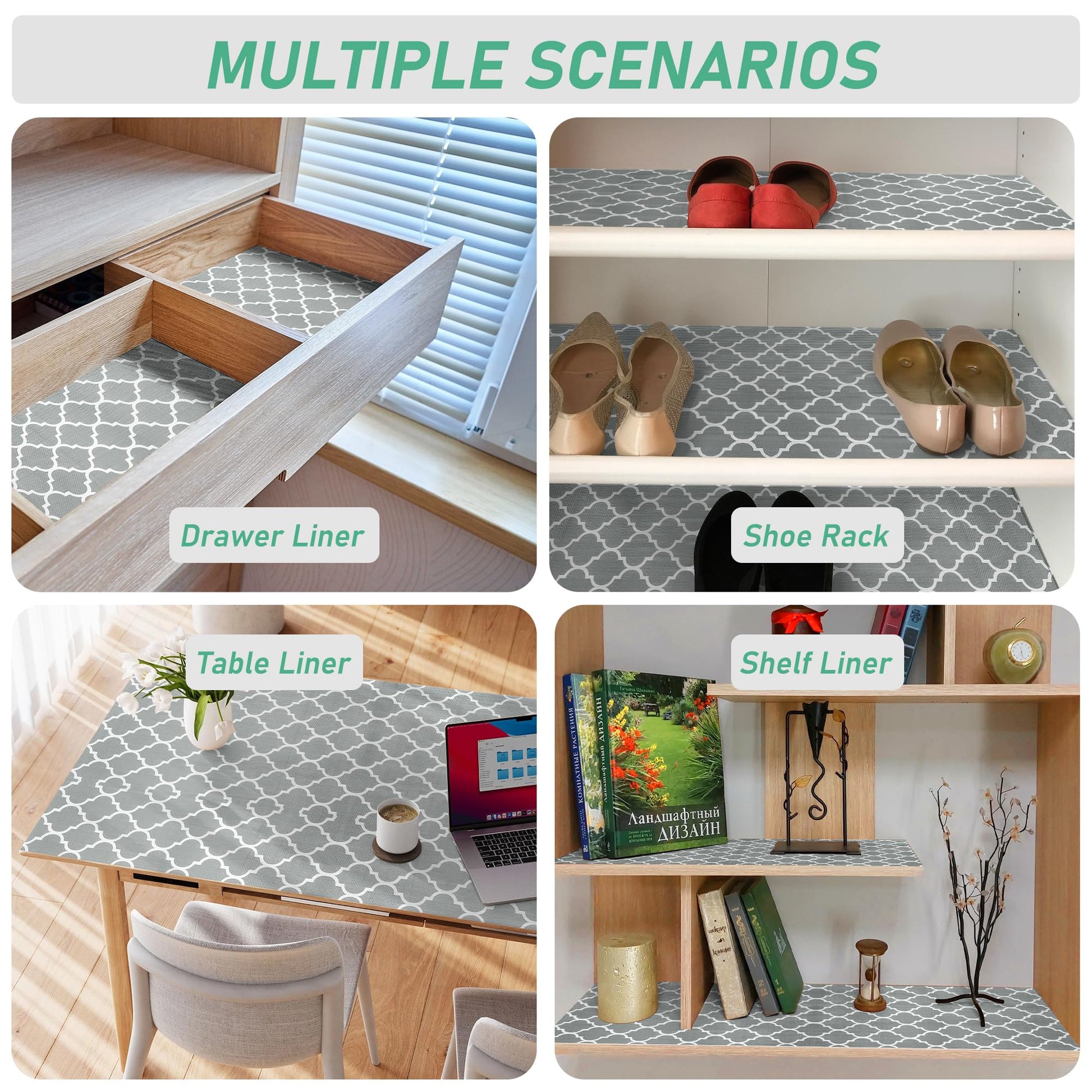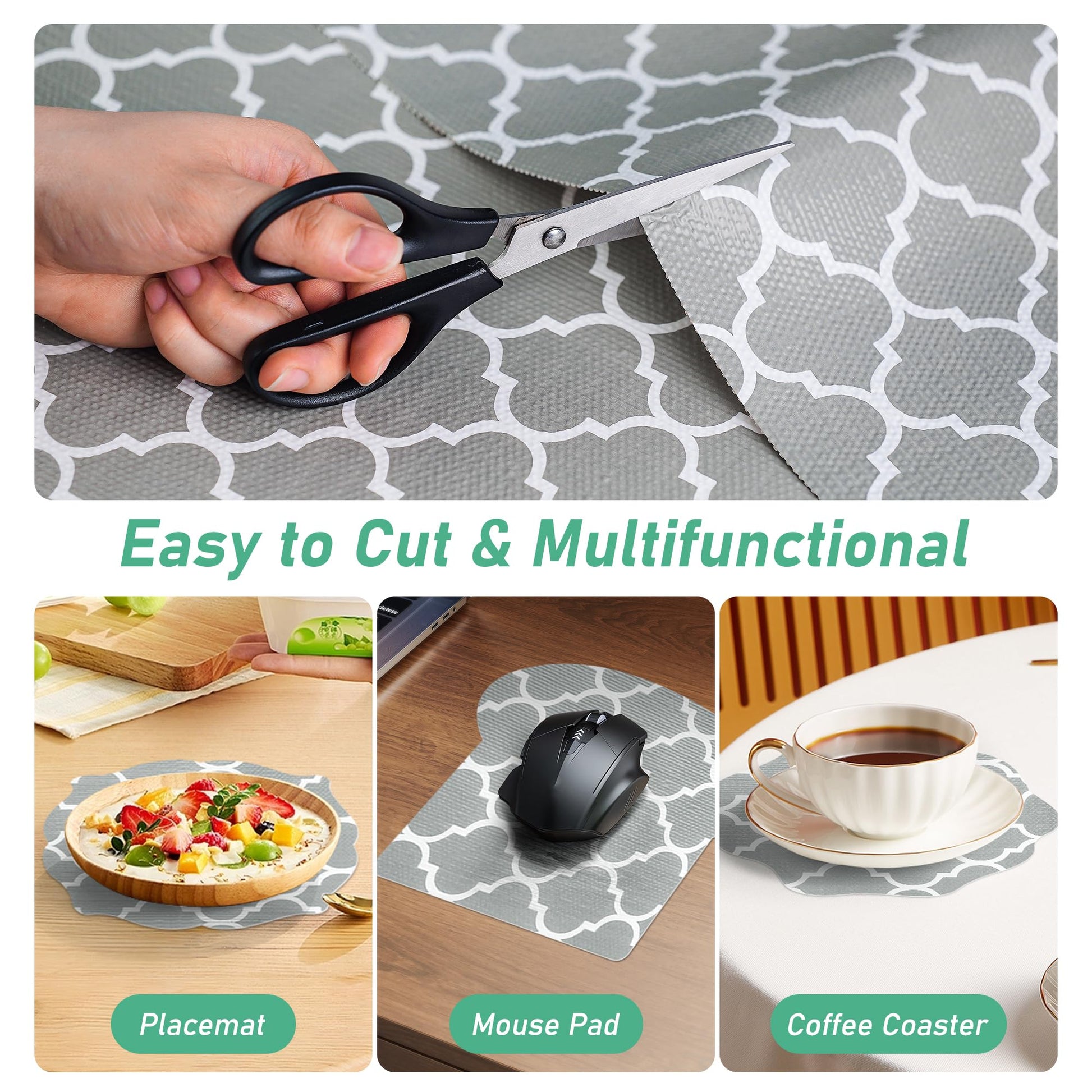 - 【Wide Range of Uses】: Our kitchen cabinet liner is very convenient to use, you can easily cut out the size you need with scissors or DIY into various patterns you want, it can be used for drawers kitchen cabinets shelf liners sideboards wardrobe shelves cupboards placemats car linings and more purpose for waiting for you to discover.