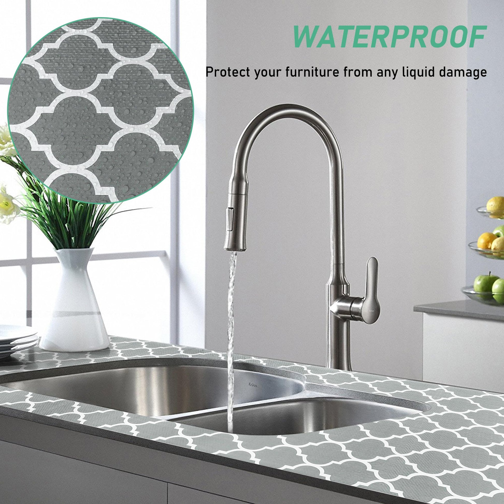 - 【Waterproof & Easy to Clean Cabinet Liner】: Our shelf liner / cabinet liner with the water and oil resistant, providing the ultimate protection for furniture against stains.It can be wiped lightly with a paper towel or rinsed with water to remove the stains on the surface.The non-adhesive shelf liners for kitchen cabinets are easily removable and used repeatedly, very convenient.