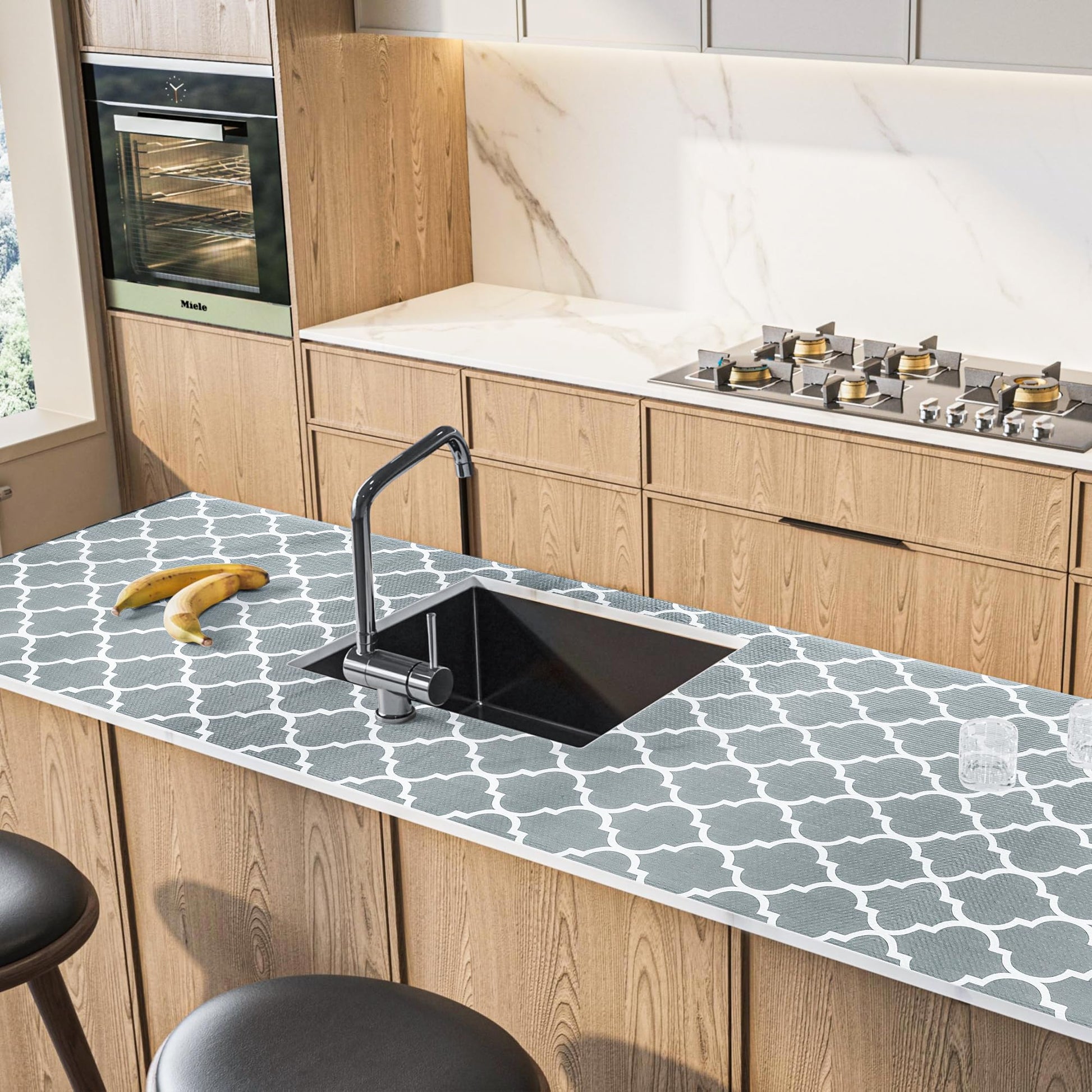 Gopas Drawer and Shelf Liner for Kitchen Cabinets, Non-Adhesive Cabinet Liner Strong Grip Non Slip Waterproof Shelf Paper for Kitchen Shelves Cupboard Drawers,Gray Lantern,12IN X 10FT
