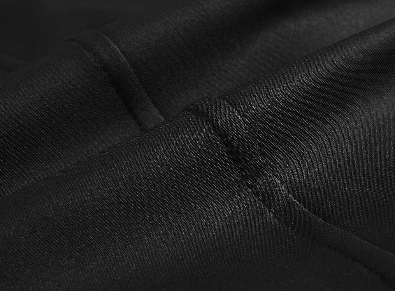 - The track jacket:Two side zippered hand pockets.Full zip closure.Stand-up collar.Long sleeve.Stretch ribbed hem and cuffs