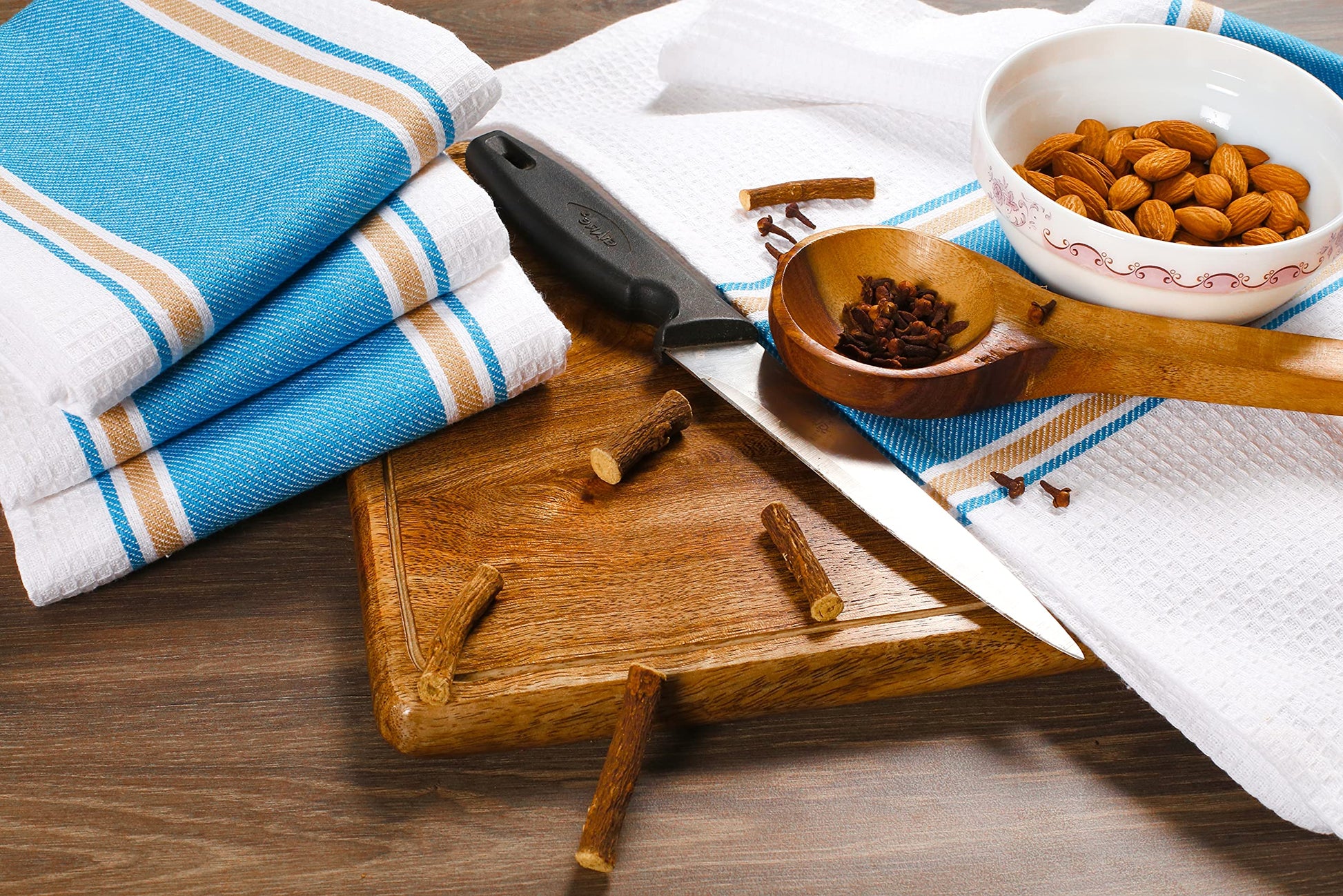 Goroly Home 6 Pack 100% Cotton Farmhouse Vintage Dish Towels Tea Towels Highly Absorbent Quick Dry Professional Grade with Hanging Loop - Twill Waffle - 18x28 Inch - Turquoise Blue