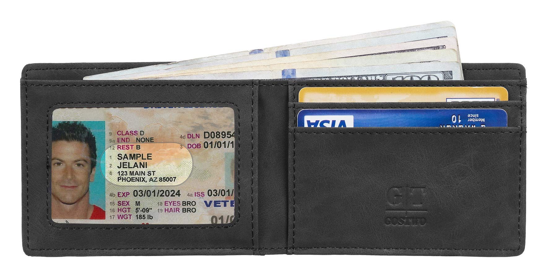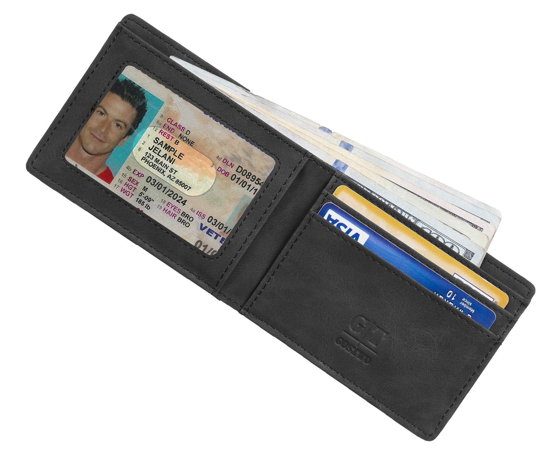 Gostwo Mens Slim Minimalist Front Pocket Wallet Genuine Leather ID Window Card Case RFID Blocking (Black Vintage)