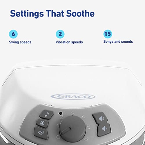 Details: The Graco® Simple Sway™ Swing is fully featured to help you soothe and comfort baby. Gentle side-to-side swaying and 6 different speeds allow you to customize to baby's preference. This baby swing also features 15 songs and sounds, a cozy head support, and soothing two-speed vibration to keep your little one content. The option to plug in or use batteries makes this Graco swing ideal for any room in the home.