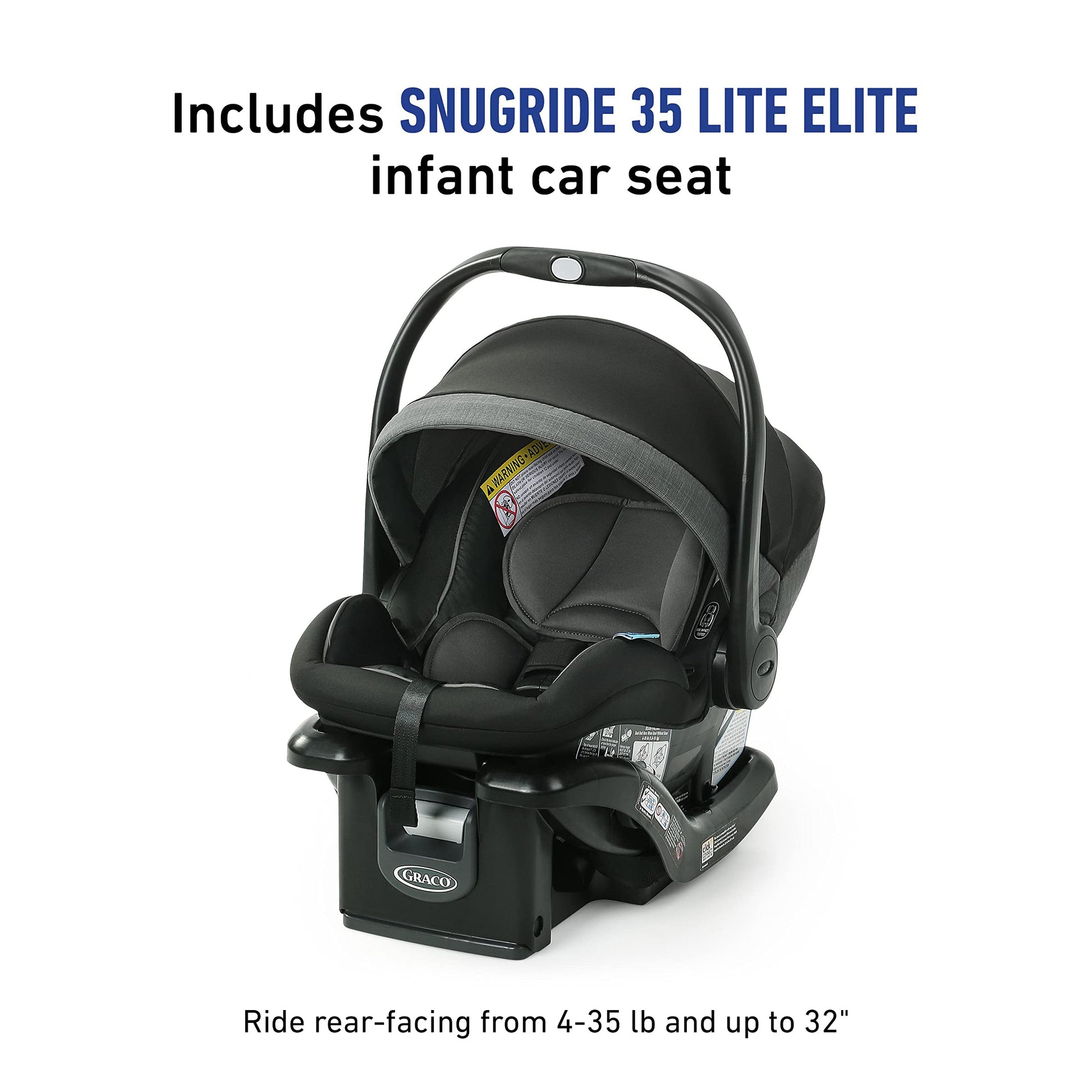 - Includes the Graco SnugRide 35 Lite Elite Infant Car Seat, rear-facing for infants from 4-35 lb and up to 32" for an easy transition from car to stroller
