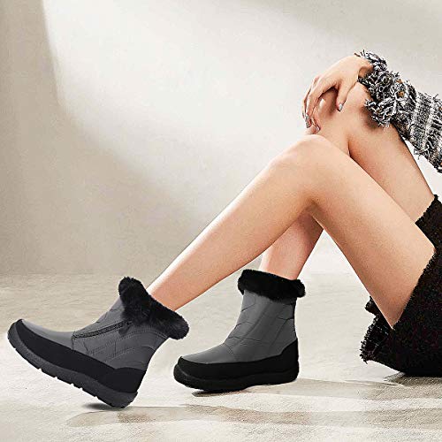 gracosy Snow Boots for Women, Warm Ankle Boots Waterproof Outdoor Slip On Fur Lined Winter Short Booties Anti-Slip Comfort Zipper Shoes Grey 8 Women